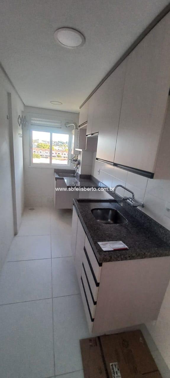 Apartamento de 2 dormitórios, mais sala, cozinha montada sob medida, área de serviço, banheiro, box para 1 veículo. Possui 49m2,