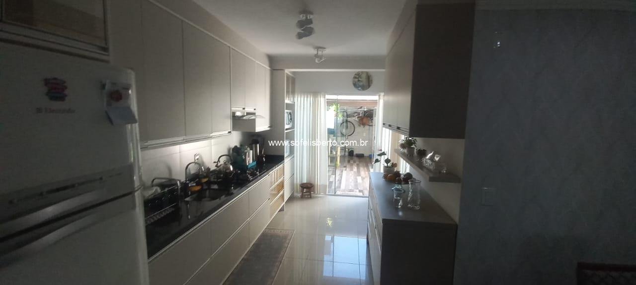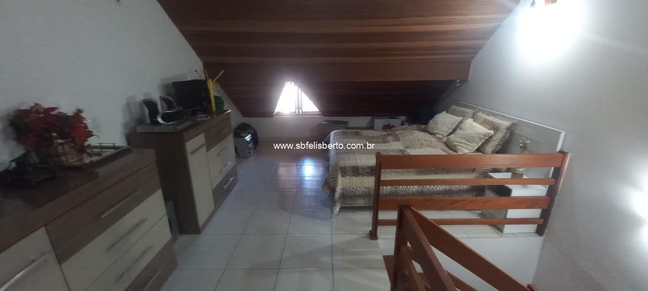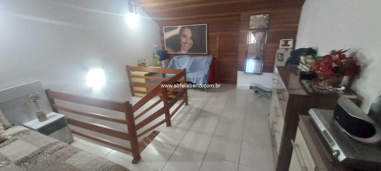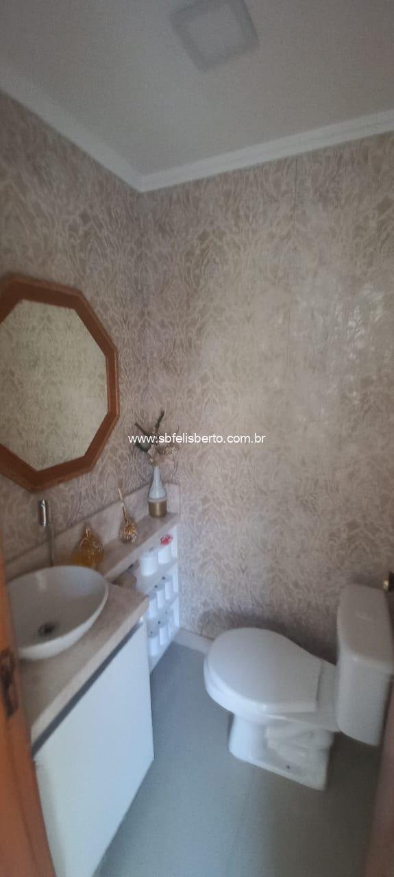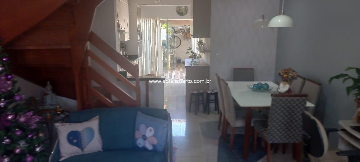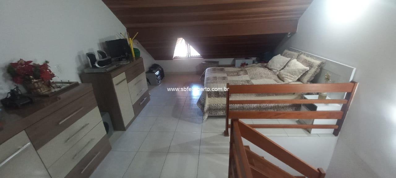 Excelente sobrado com 2 suítes, total de quartos 3 considerando o sótão, são 3 banheiros no total, contando com lavabo, mais sala, cozinha, área de serviço, piso porcelanato na parte térrea, segundo e terceiro andar piso frio, escadaria de madeira, aberturas de madeira, possui sacada na frente, pátio nos fundos com ediga, água quente, banheiros com instalações a gás, garagem na frente para 2 veículos, grade com portão eletrônico.