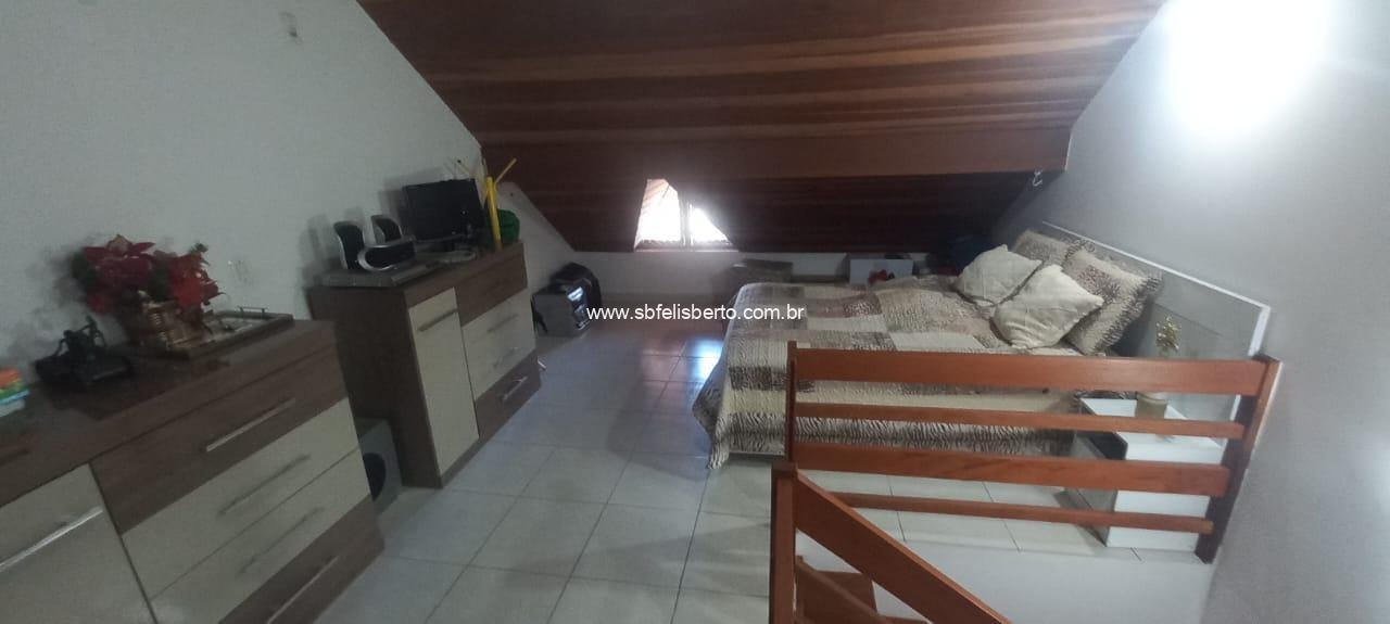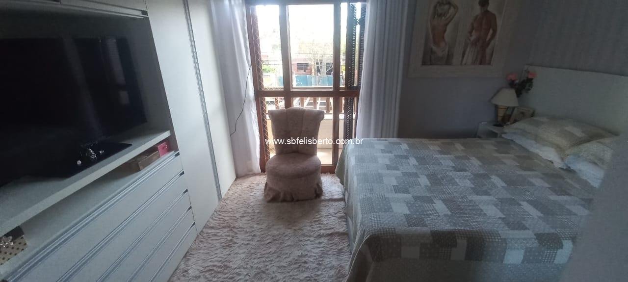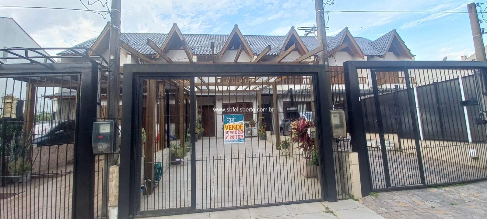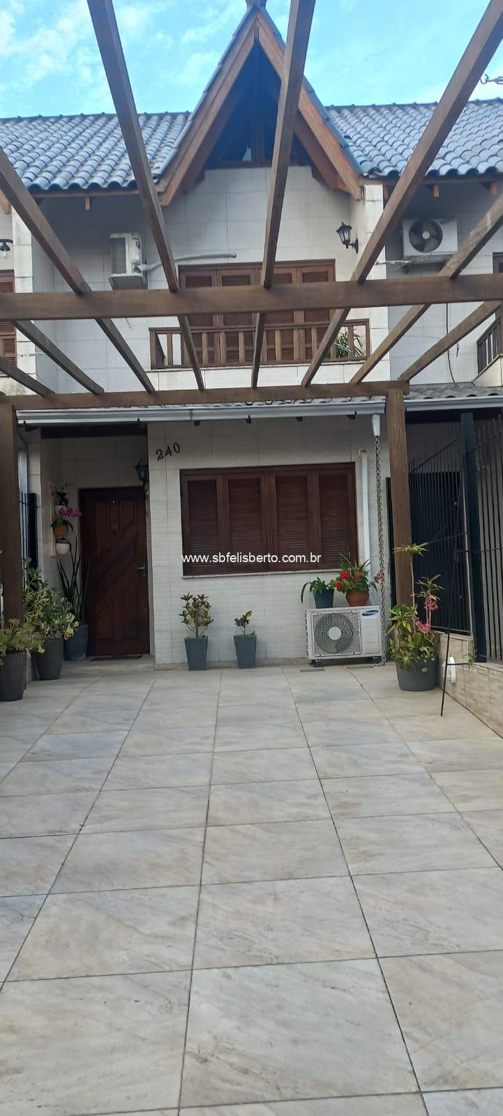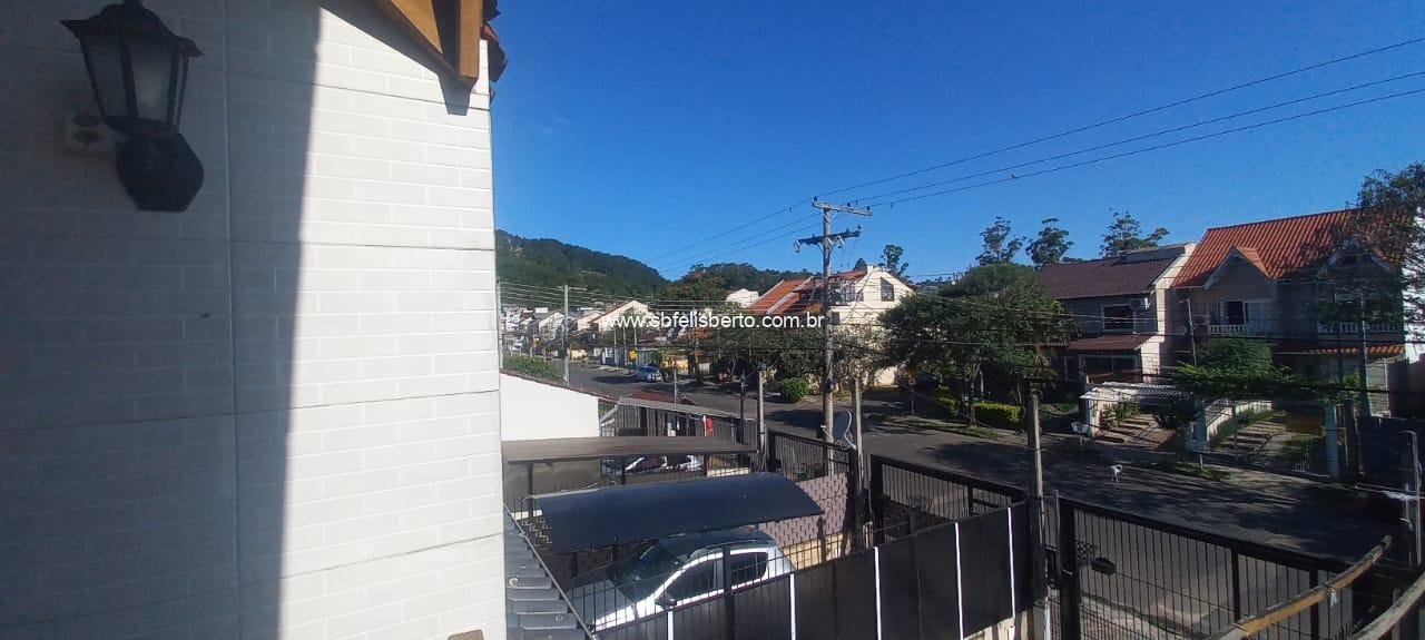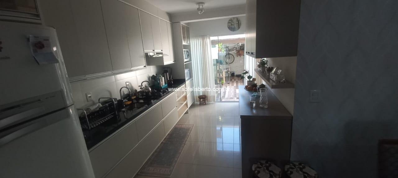 Excelente sobrado com 2 suítes, total de quartos 3 considerando o sótão, são 3 banheiros no total, contando com lavabo, mais sala, cozinha, área de serviço, piso porcelanato na parte térrea, segundo e terceiro andar piso frio, escadaria de madeira, aberturas de madeira, possui sacada na frente, pátio nos fundos com ediga, água quente, banheiros com instalações a gás, garagem na frente para 2 veículos, grade com portão eletrônico.