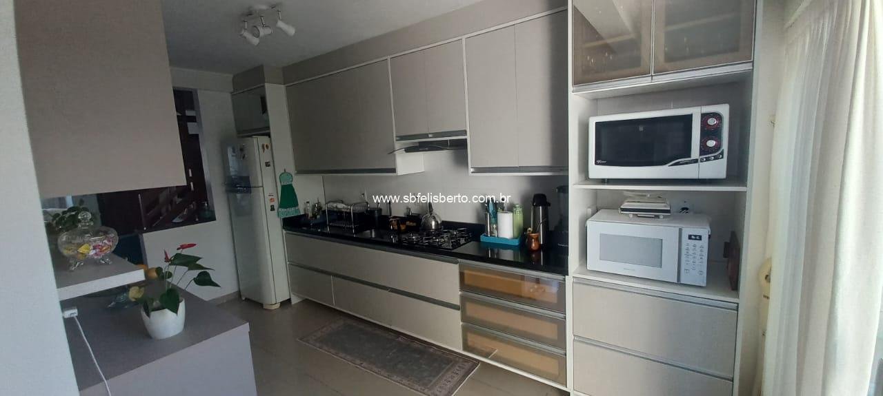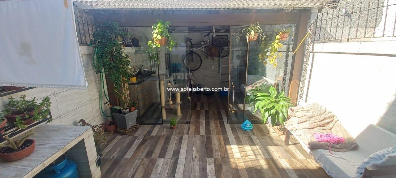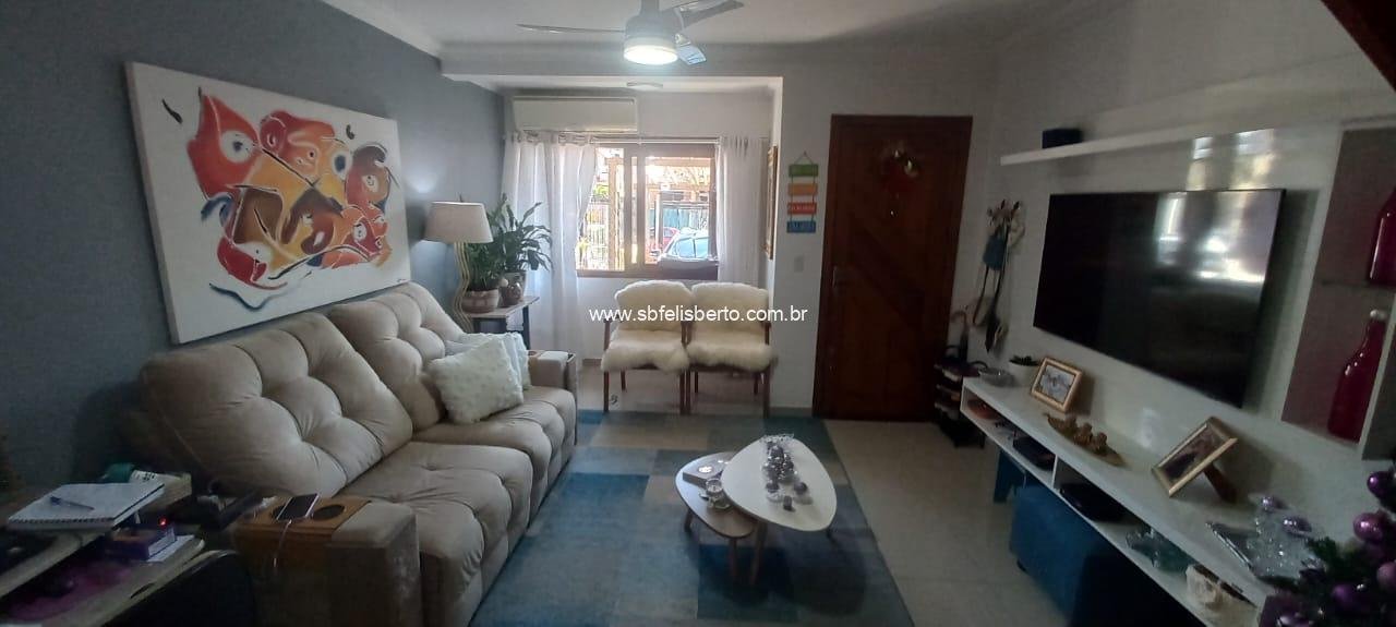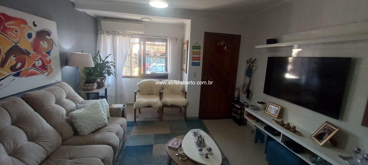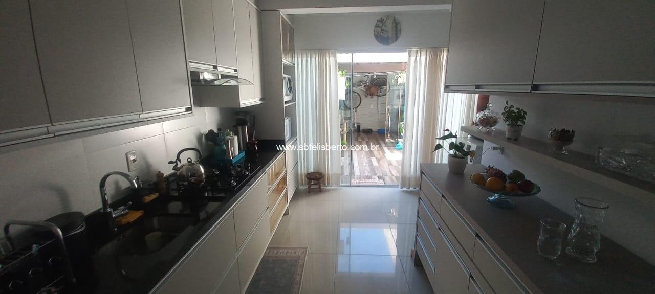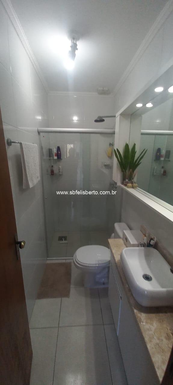 Excelente sobrado com 2 suítes, total de quartos 3 considerando o sótão, são 3 banheiros no total, contando com lavabo, mais sala, cozinha, área de serviço, piso porcelanato na parte térrea, segundo e terceiro andar piso frio, escadaria de madeira, aberturas de madeira, possui sacada na frente, pátio nos fundos com ediga, água quente, banheiros com instalações a gás, garagem na frente para 2 veículos, grade com portão eletrônico.