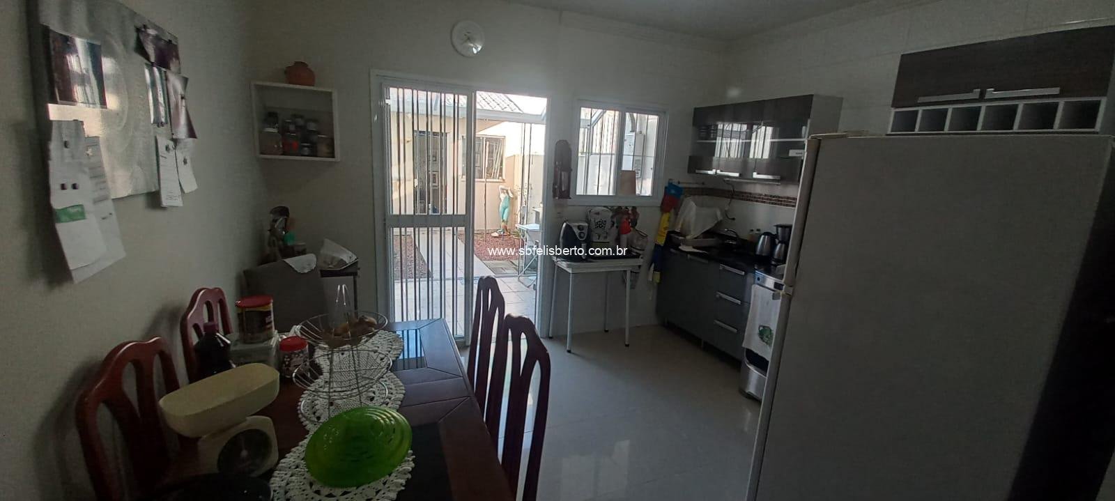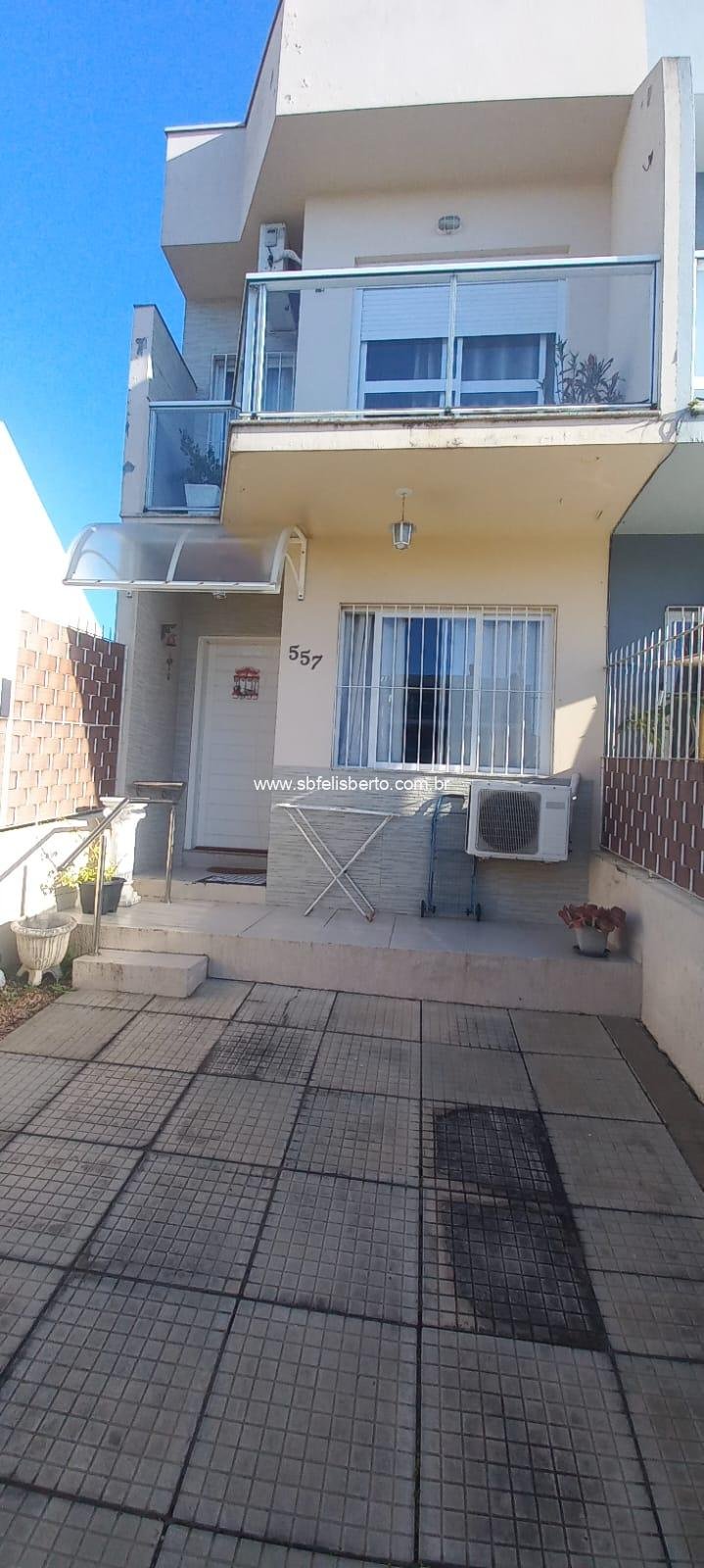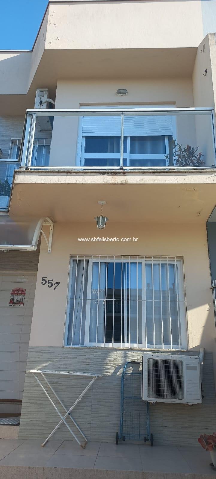 Sobrado com 2 dormitórios sendo 2 suítes, mais lavabo, sala, cozinha, área de serviço, pátio com edícula, pisos porcelanato em toda a casa, escadaria de alvenaria com granito, sacada, água quente, banheiros com opção a gás e elétricos, toda murada com grade de ferro e portão eletrônico, vaga para 1 veiculo.
