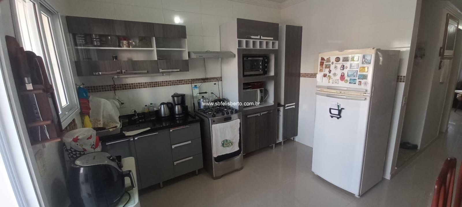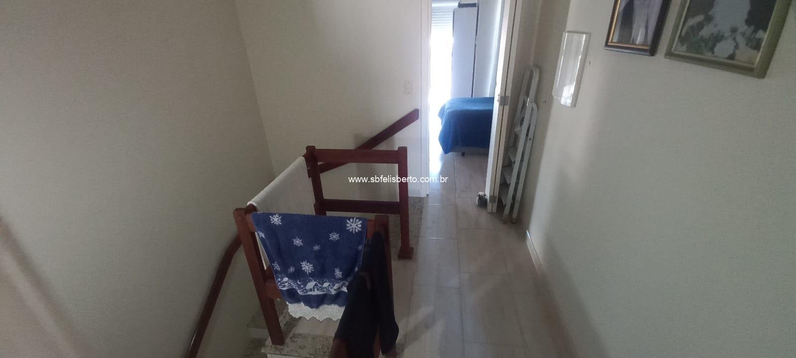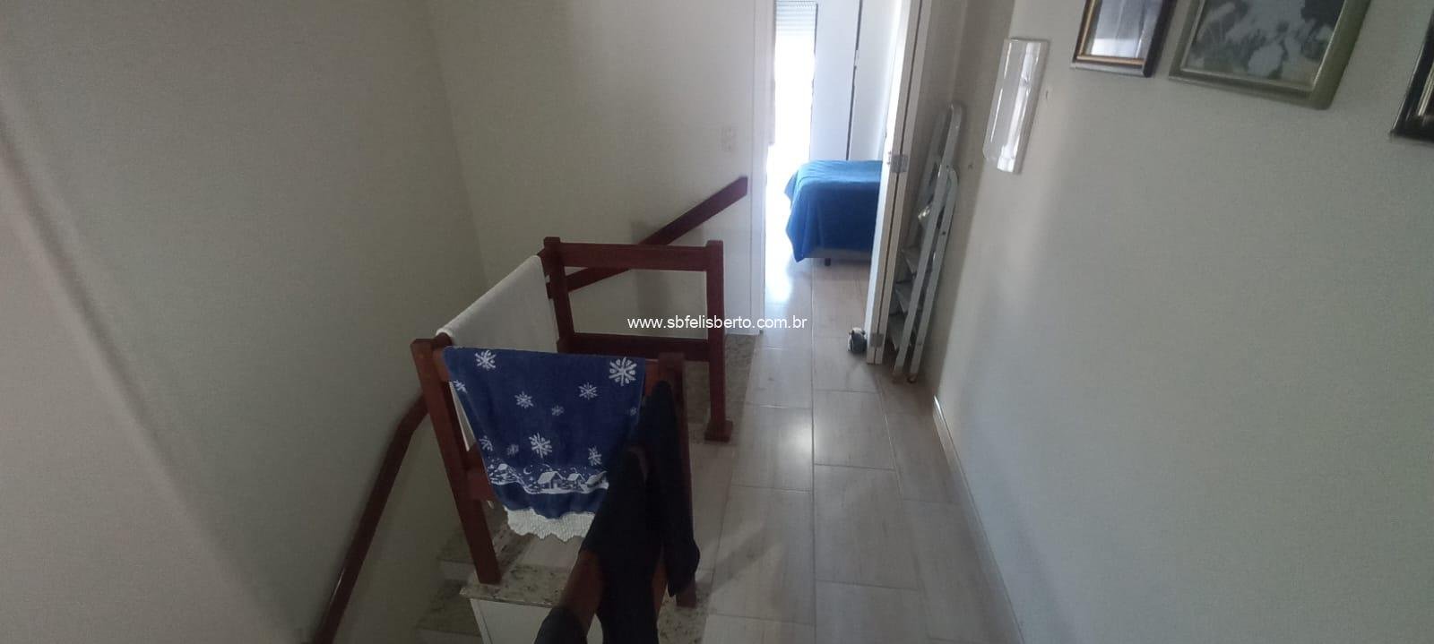 Sobrado com 2 dormitórios sendo 2 suítes, mais lavabo, sala, cozinha, área de serviço, pátio com edícula, pisos porcelanato em toda a casa, escadaria de alvenaria com granito, sacada, água quente, banheiros com opção a gás e elétricos, toda murada com grade de ferro e portão eletrônico, vaga para 1 veiculo.