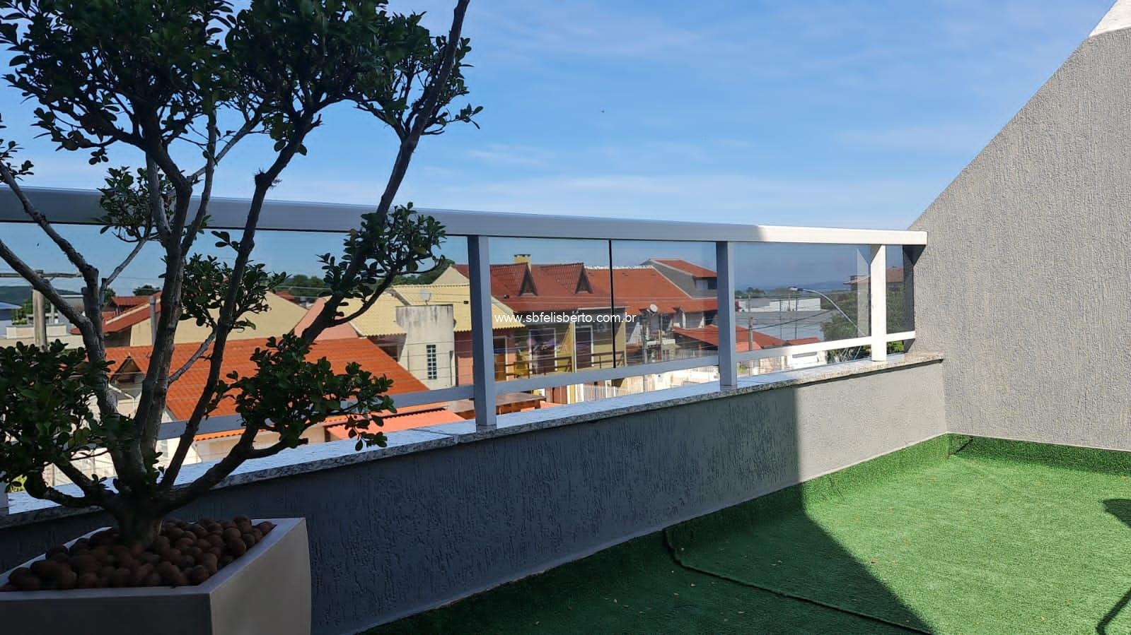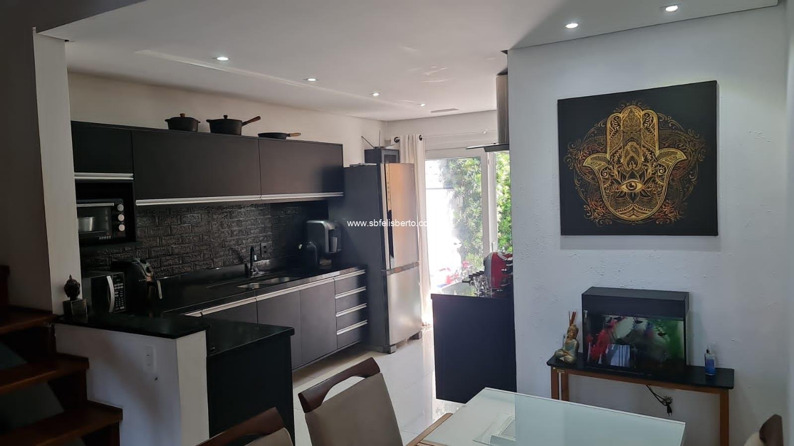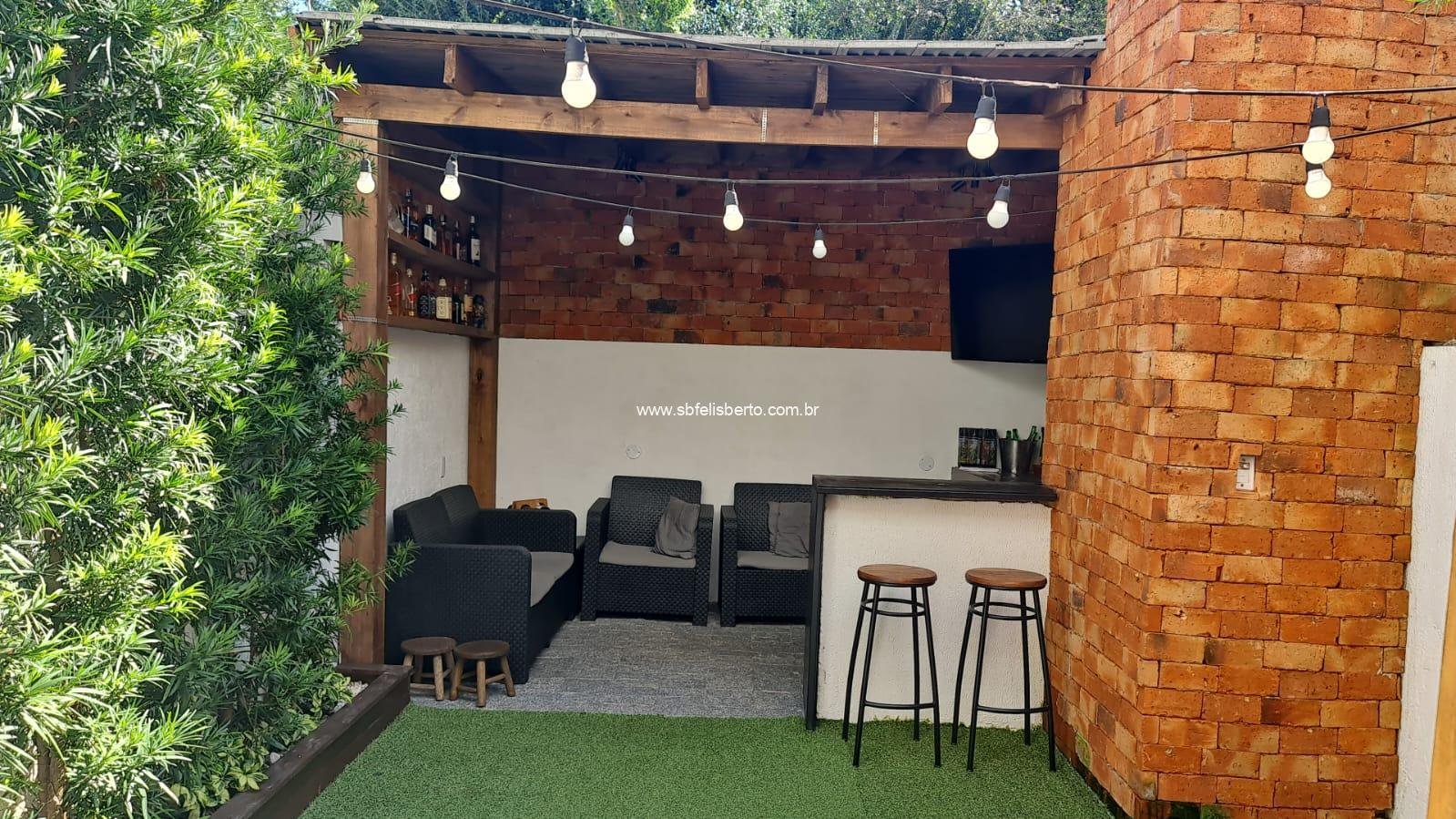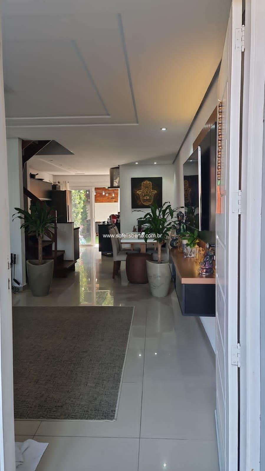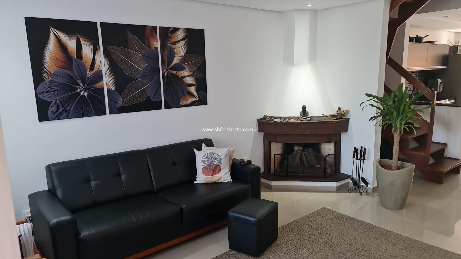 Sobrado com 3 pavimentos, 3 suítes, mais lavabo, sala, cozinha, área de serviço, churrasqueira, pátio, piso porcelanato, escadaria de madeira, lareira, sacada na frente, terraço, pátio com pergolado, piso porcelanato na parte térrea, laminado no segundo e terceiro pavimento, grade e portão eletrônico, vaga para 2 veículos, banheiros com instalações a gás e elétrica, possui 135m2 de área construída, fica os móveis sob-medidas.