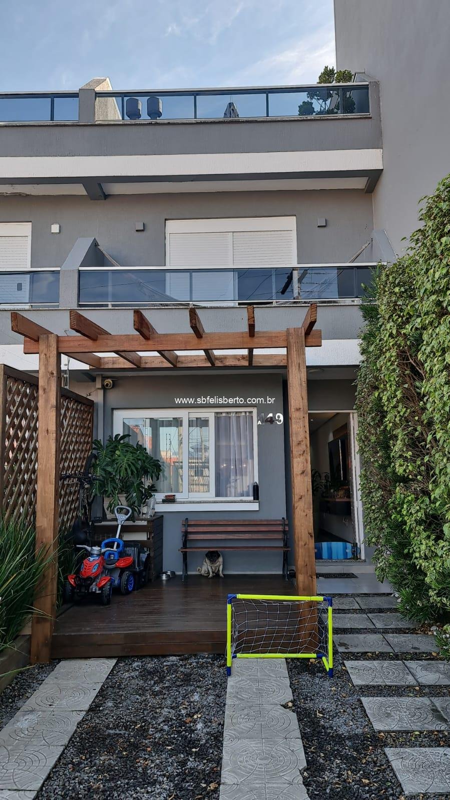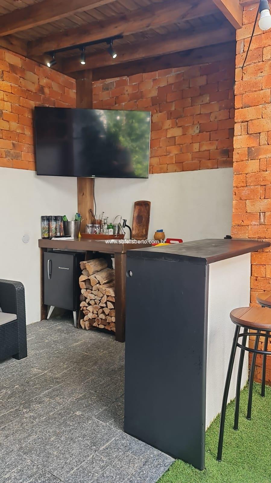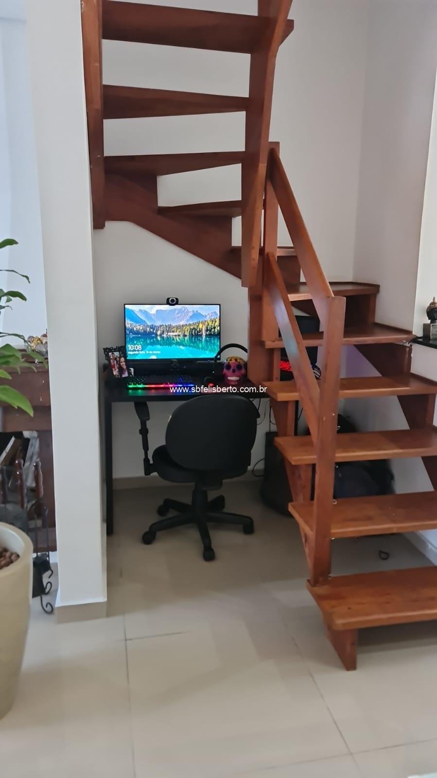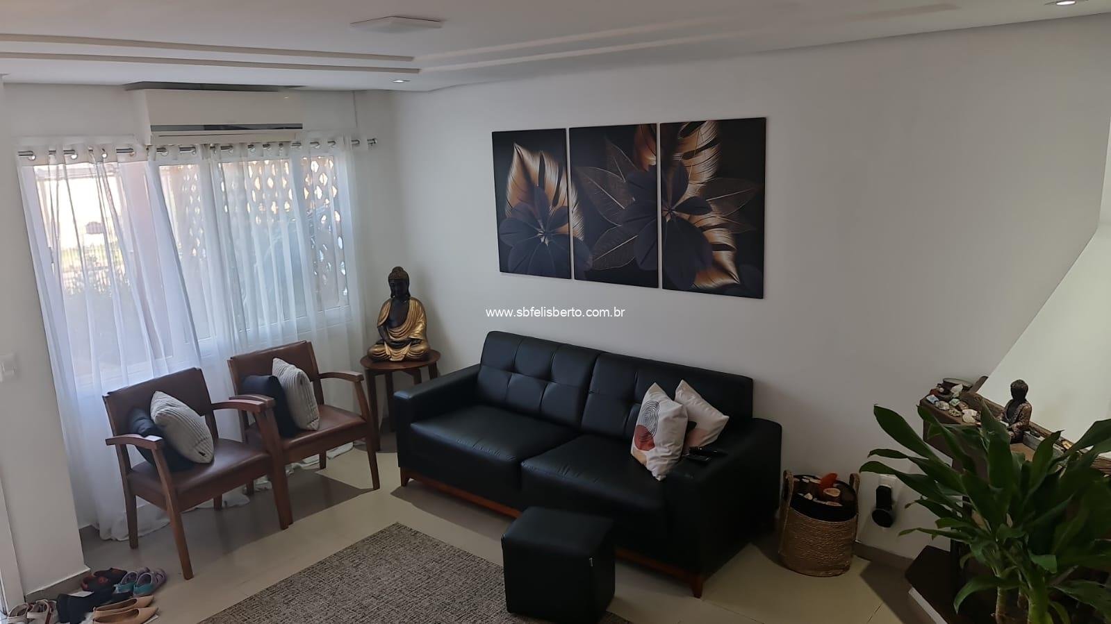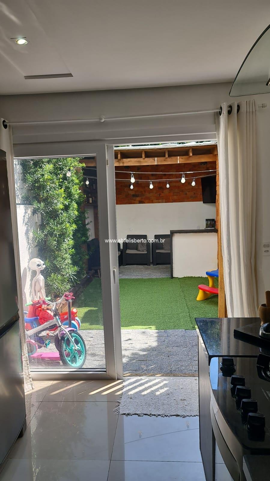 Sobrado com 3 pavimentos, 3 suítes, mais lavabo, sala, cozinha, área de serviço, churrasqueira, pátio, piso porcelanato, escadaria de madeira, lareira, sacada na frente, terraço, pátio com pergolado, piso porcelanato na parte térrea, laminado no segundo e terceiro pavimento, grade e portão eletrônico, vaga para 2 veículos, banheiros com instalações a gás e elétrica, possui 135m2 de área construída, fica os móveis sob-medidas.