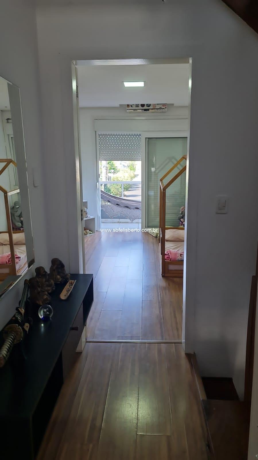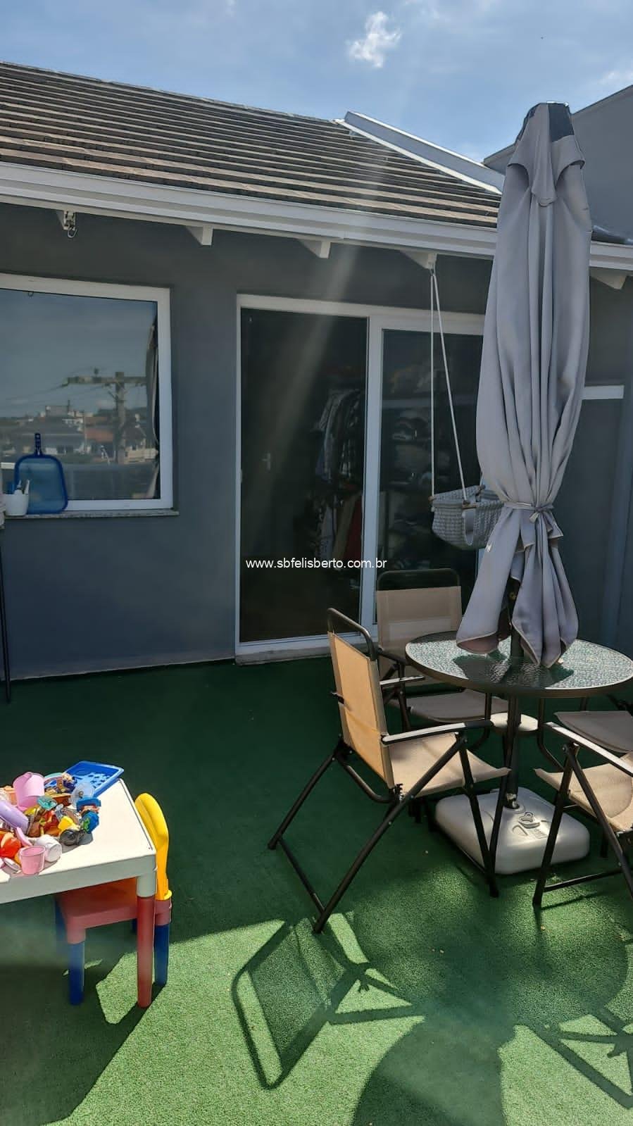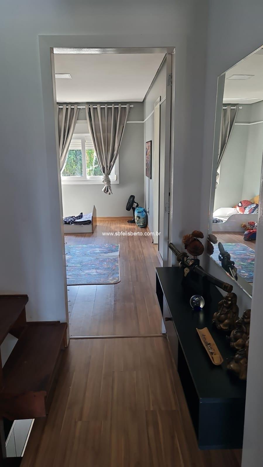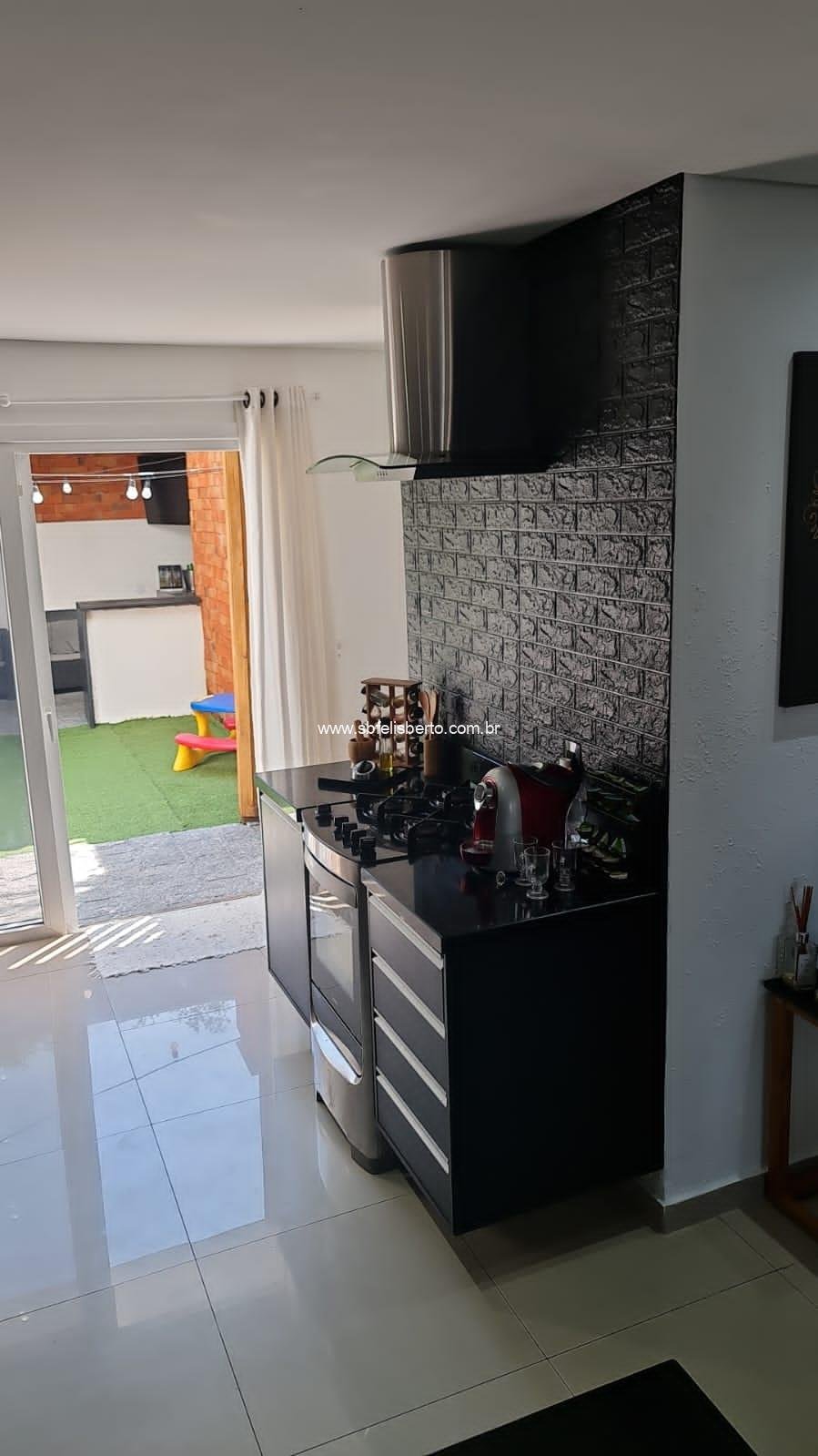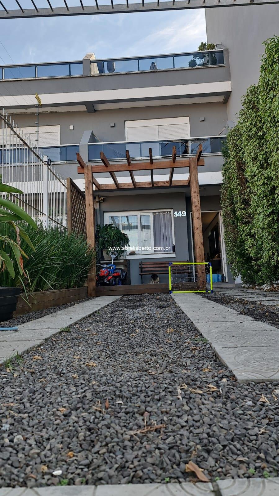 Sobrado com 3 pavimentos, 3 suítes, mais lavabo, sala, cozinha, área de serviço, churrasqueira, pátio, piso porcelanato, escadaria de madeira, lareira, sacada na frente, terraço, pátio com pergolado, piso porcelanato na parte térrea, laminado no segundo e terceiro pavimento, grade e portão eletrônico, vaga para 2 veículos, banheiros com instalações a gás e elétrica, possui 135m2 de área construída, fica os móveis sob-medidas.